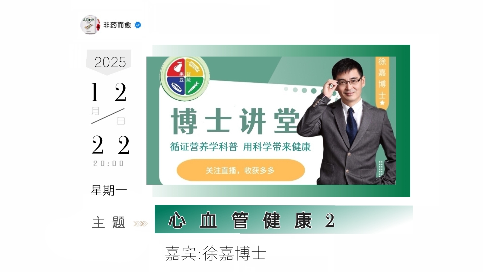 博士讲堂:心血管健康2 嘉宾:徐嘉博士 2025.12.22