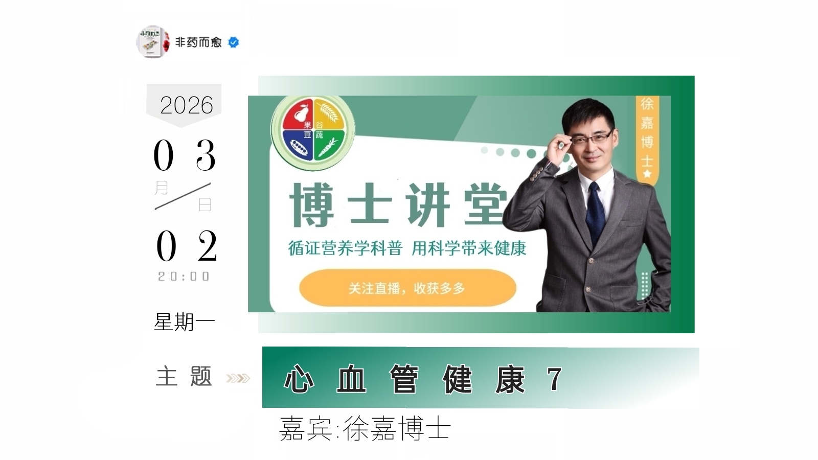 博士讲堂:心血管健康7 嘉宾:徐嘉博士 2026.03.02